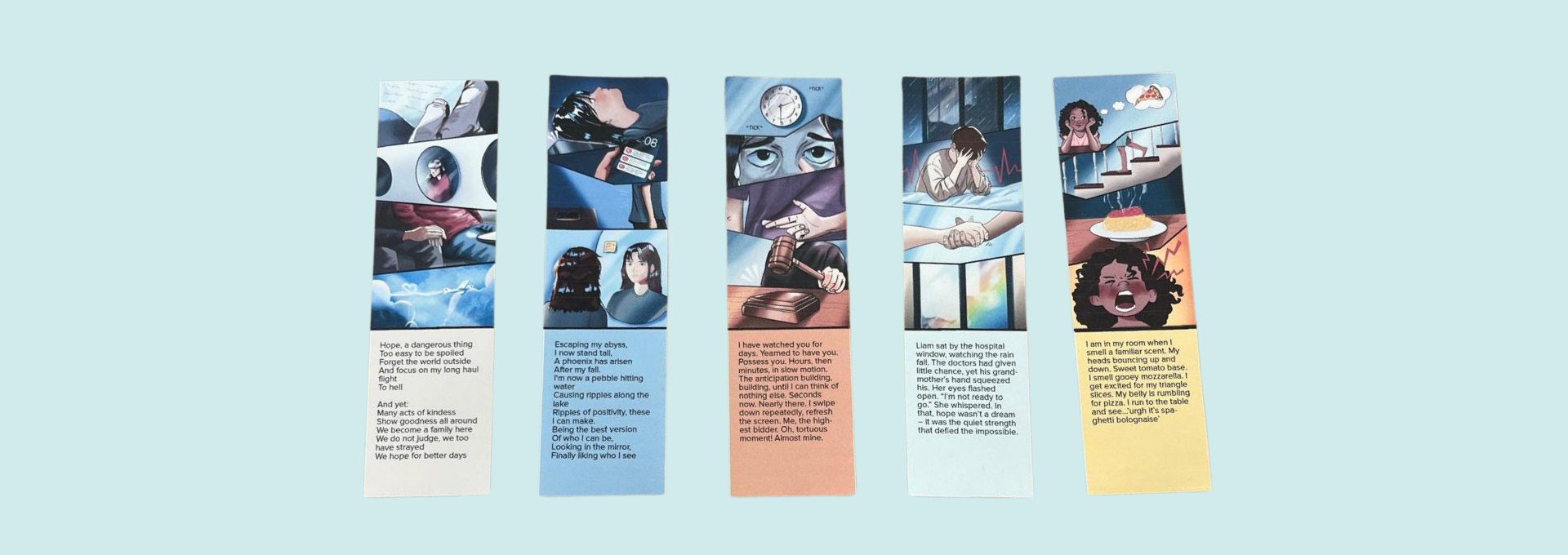 The winning Flash Fiction stories for 2026 are illustrated by Jessica Critchlow, who won a separate competition for University of Derby second-year Illustration and Graphic Design students. The illustrated winning stories will be printed onto a set of Festival bookmarks.